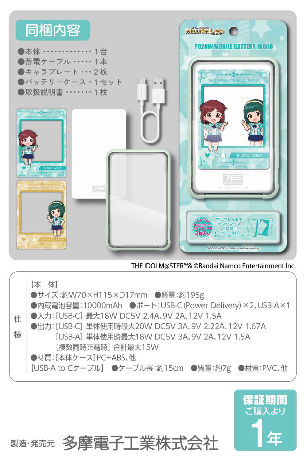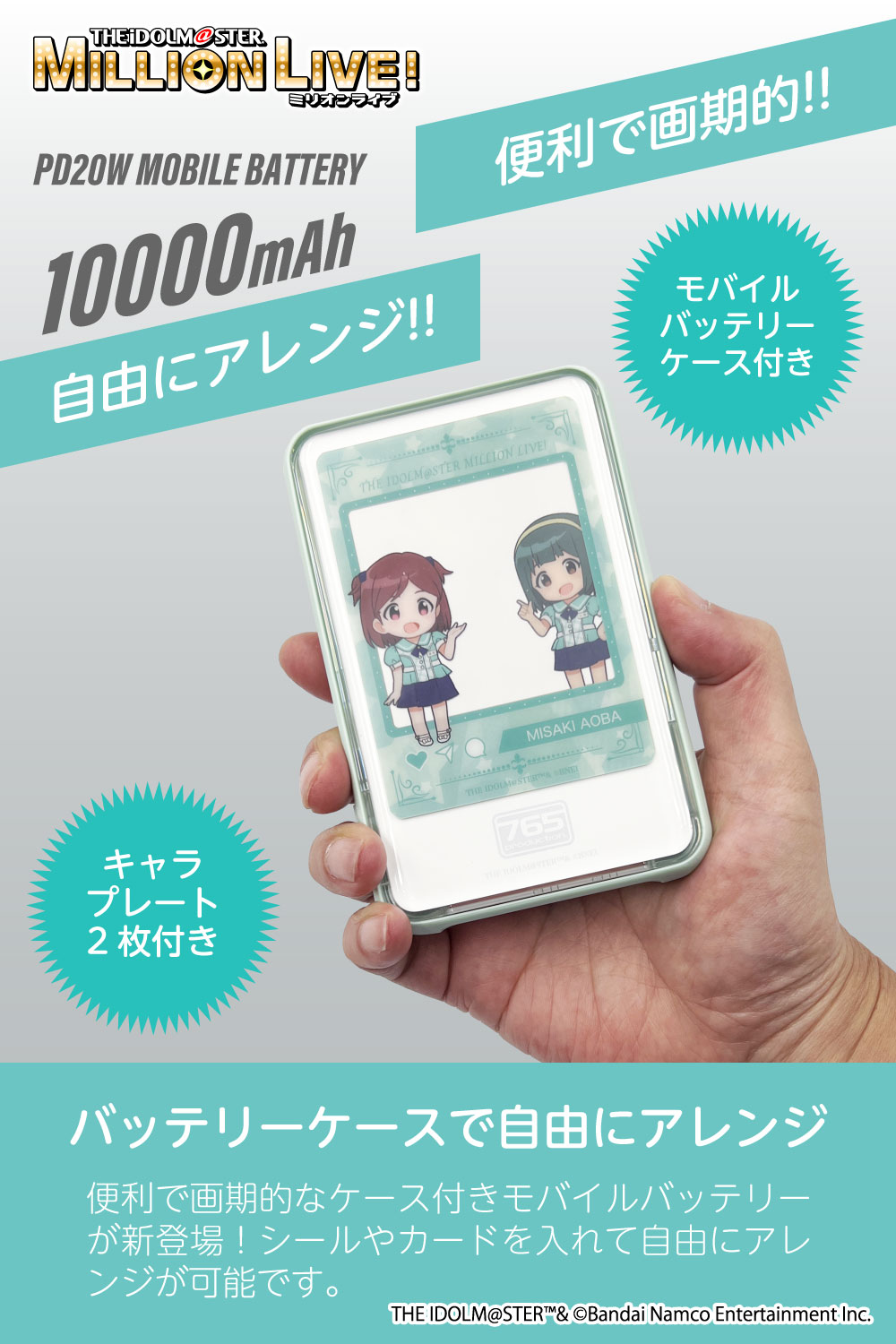 ミリオンライブ! 青羽美咲・音無小鳥 PD20W モバイルバッテリー 10000mAh スカイブルー 専用ケース付き キャラプレート2枚付属 BN-LP133C2W-SL