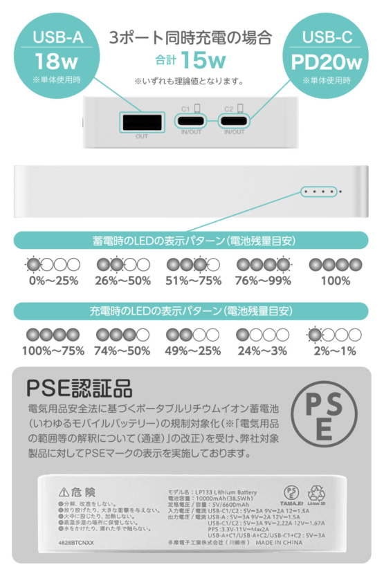 ●バッテリー容量はたっぷりの10000mAhモデル。