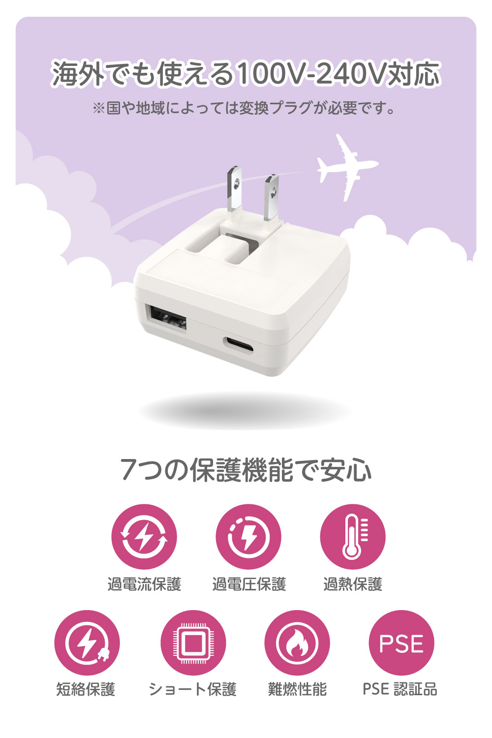 ●PD20Wでスマホやタブレット、ゲーム機の充電に最適。
