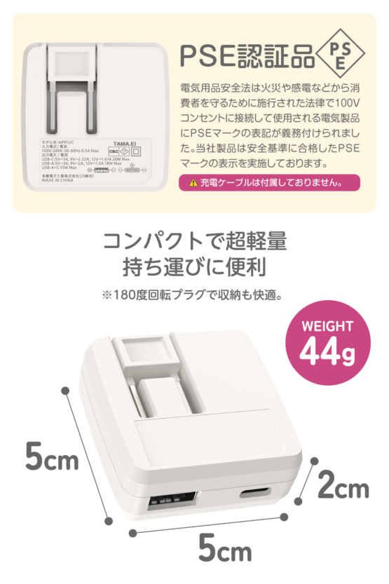 ●180°回転式プラグACプラグ採用で収納、持運びに便利。