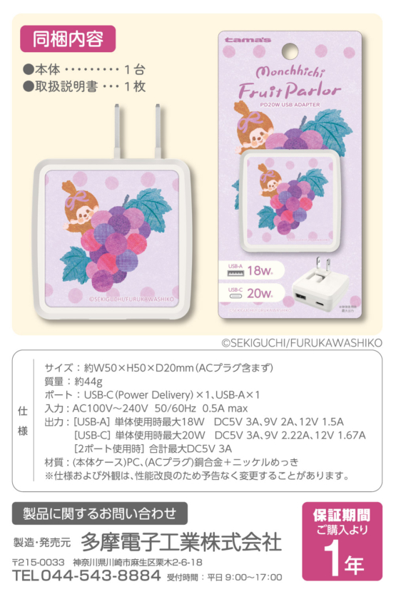★大人気「モンチッチ」のAC充電器(USB充電器)が新登場★