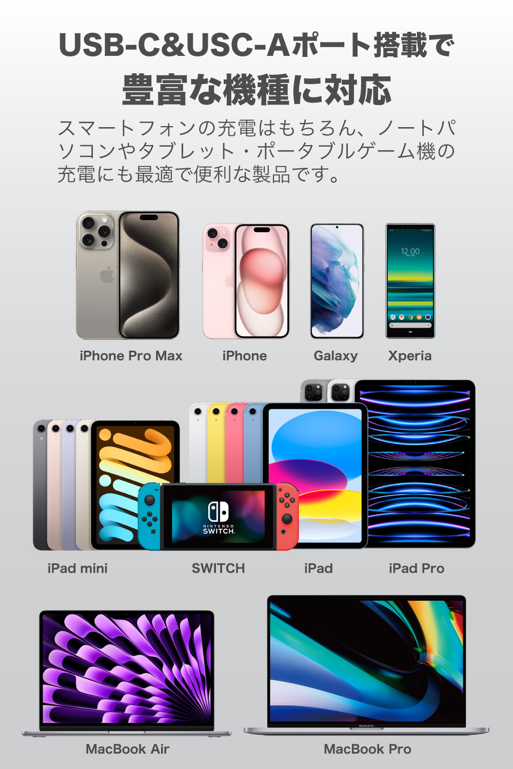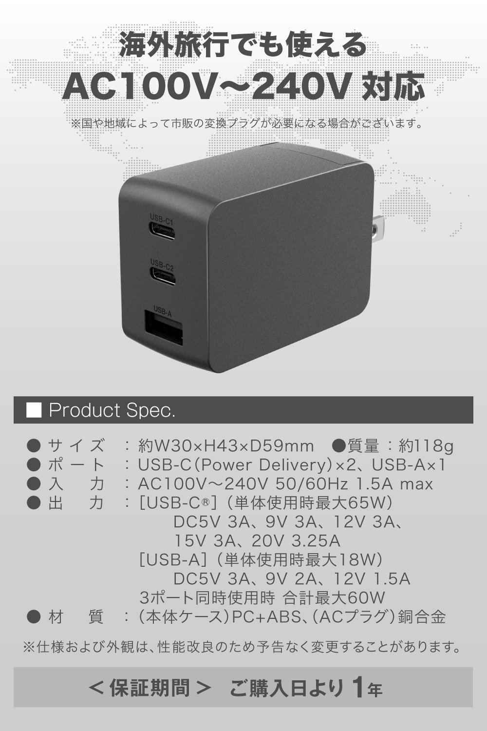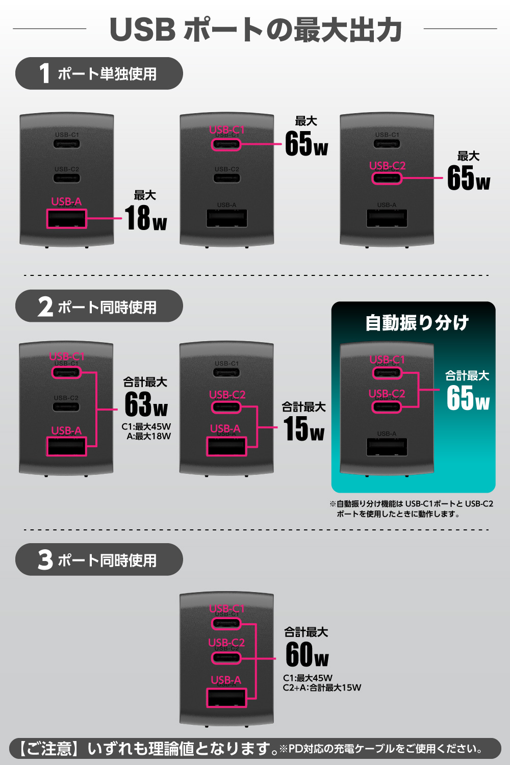 ●65WでノートPC、スマホやタブレット、ゲーム機の充電に最適。iPhone17にも。