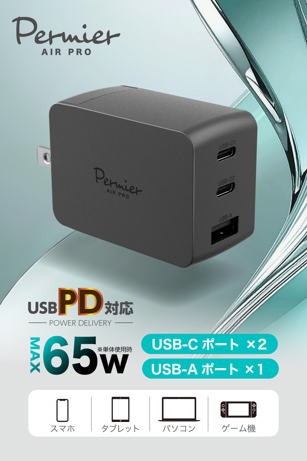 ●超急速充電可能!PD(パワーデリバリー)に対応したACアダプタ。